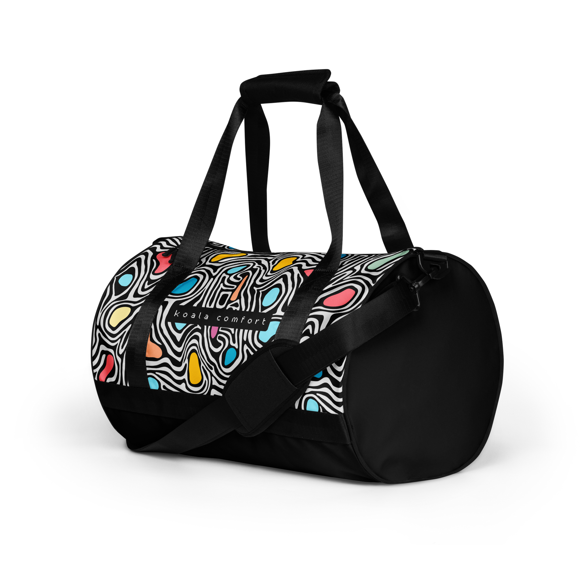 The Color Drop duffle brings an artistic splash of vibrant hues to brighten up any day.
