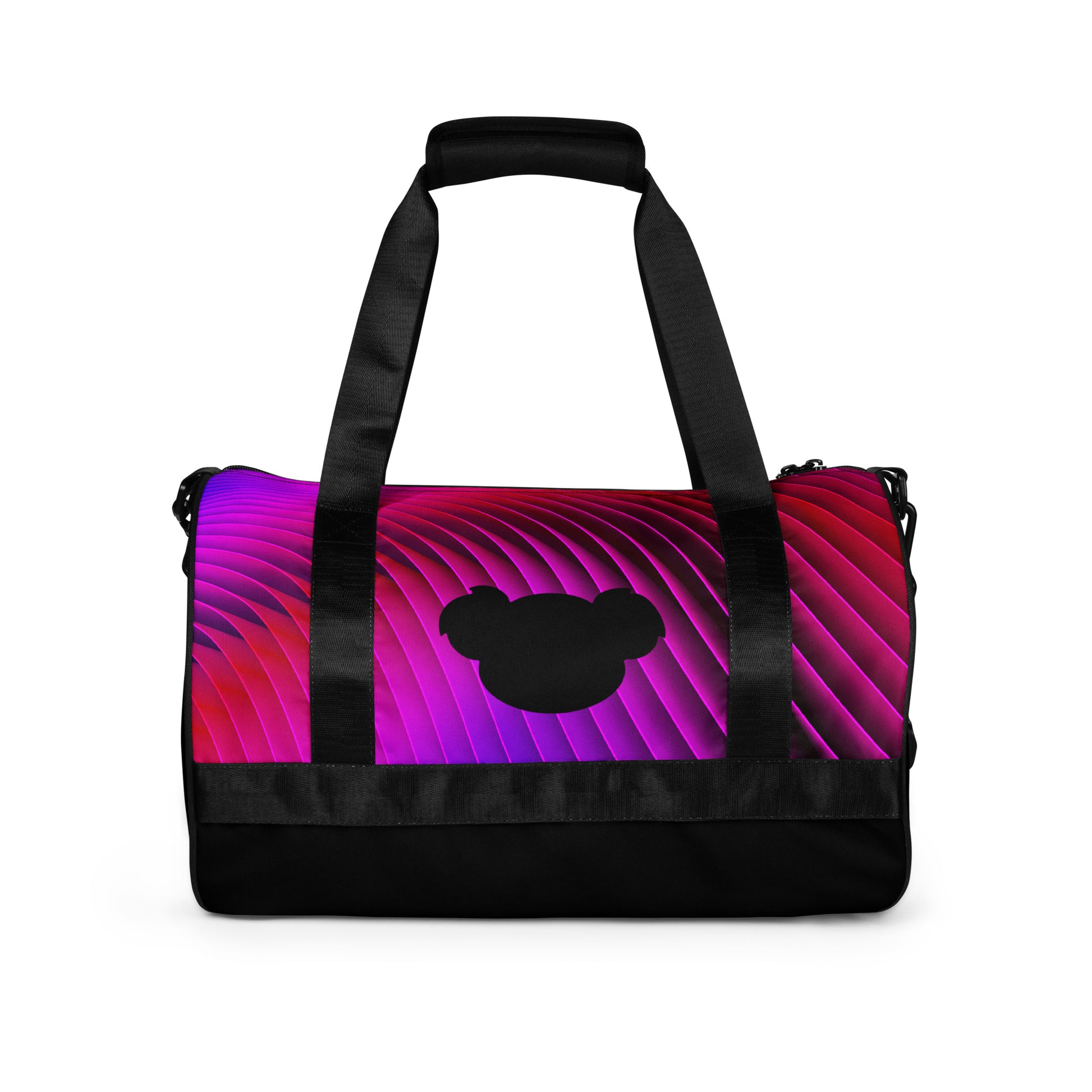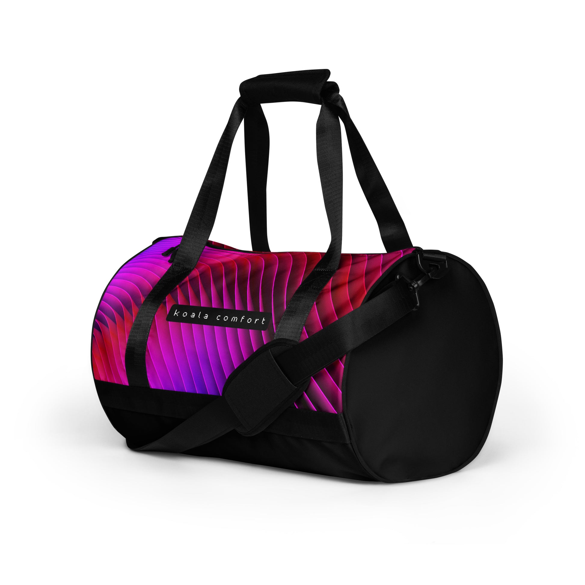 Make a bold statement with the Purple and Red Ridges duffle, showcasing striking colors and textured design.