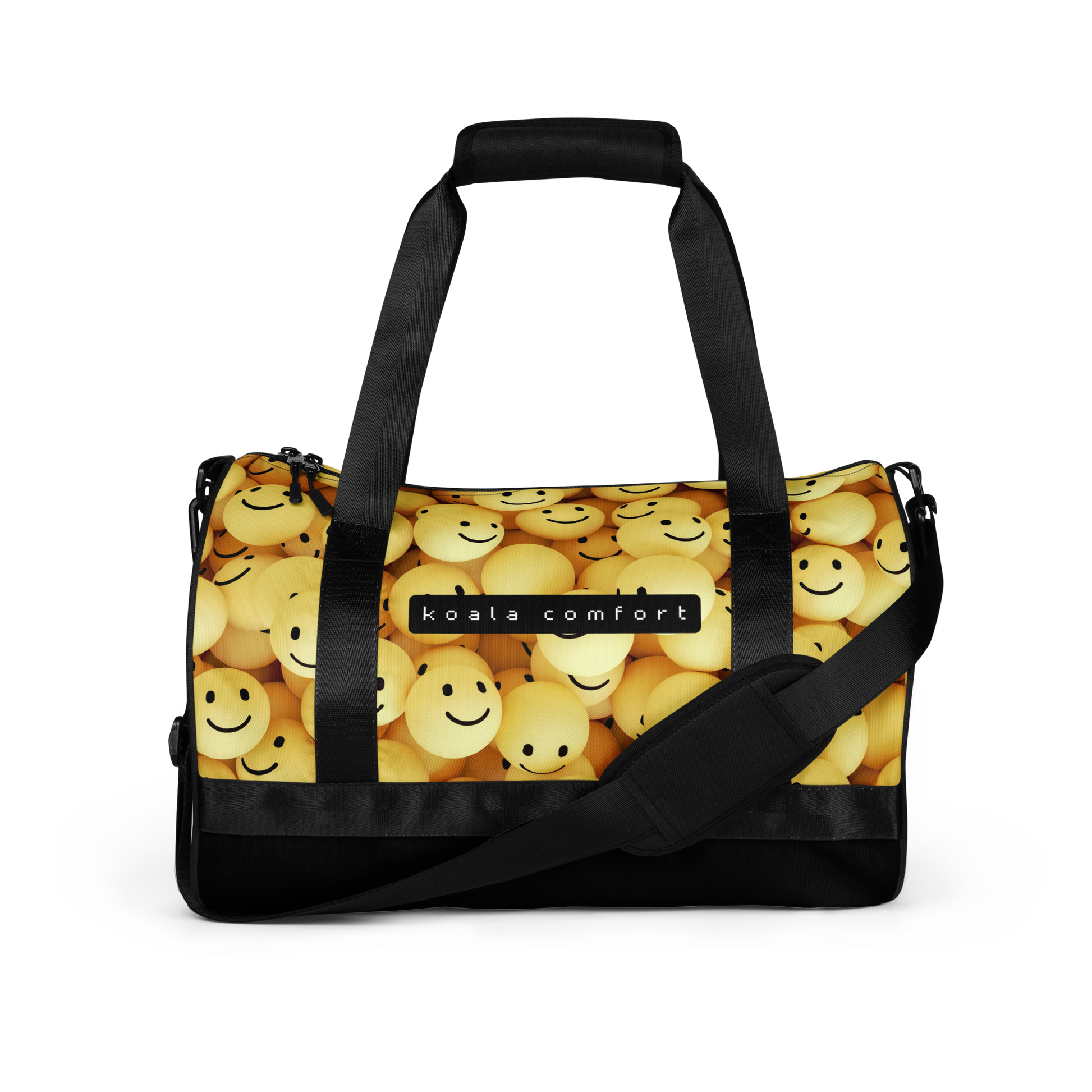Spread good vibes with the Smiley Balls duffle, featuring a fun, light-hearted pattern.